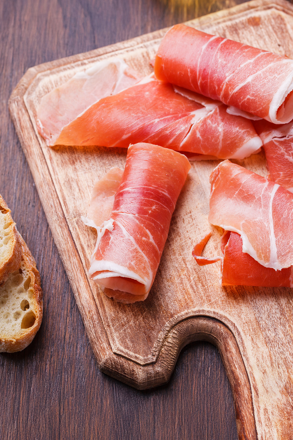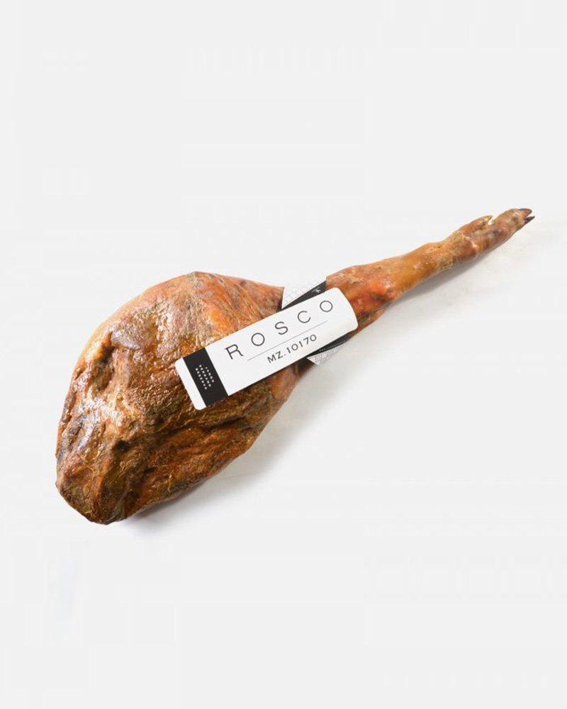Le jambon Serrano est issu de porcs blancs, principalement des races Landrace, Large White ou Duroc. Son nom vient des « sierras » espagnoles, ces régions montagneuses où l’air sec permet un affinage naturel. Elevés en bâtiment, ces porcs reçoivent une alimentation à base de céréales et d’aliments composés, garantissant une croissance maîtrisée. Le jambon Serrano se reconnaît à sa chair rosée, sa texture tendre et sa saveur douce et délicate. Selon la durée d’affinage, il existe en trois catégories : Bodega, Reserva et Gran Reserva.